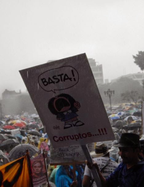 En realidad es la 4ta manifestación popular en Guatemala, pero éste sábado 16-May, miles de guatemaltecos indignados por los descaros aprovechamientos de nuestros funcionarios públicos, acudimos (sin ningún anzuelo) al parque central (Plaza de la Constitución) a reclamar justicia, la renuncia del actual presidente, así como a las reformas a leyes que solo facilitan la corrupción.